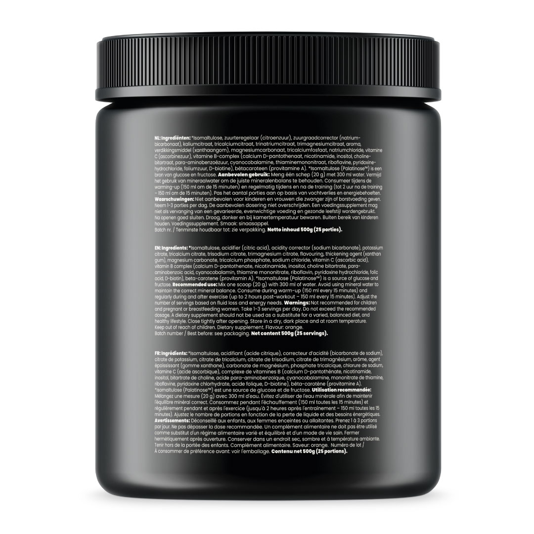 ✔ Geleidelijke energieafgifte – Dankzij Isomaltulose (Palatinose™), een hoogwaardige bron van glucose en fructose, wordt energie geleidelijk vrijgegeven, waardoor schommelingen in je bloedsuikerspiegel worden voorkomen en je langer kunt presteren.