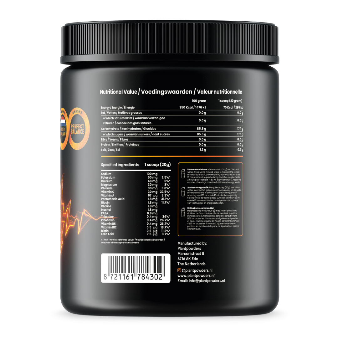 Tijdens intensieve inspanning verliest je lichaam via transpiratie essentiële elektrolyten en energievoorraden. Plantpowders Electrolytes vult deze tekorten direct aan, zodat je beter gehydrateerd blijft, je energieniveau stabiel blijft en je spieren optimaal kunnen blijven functioneren.